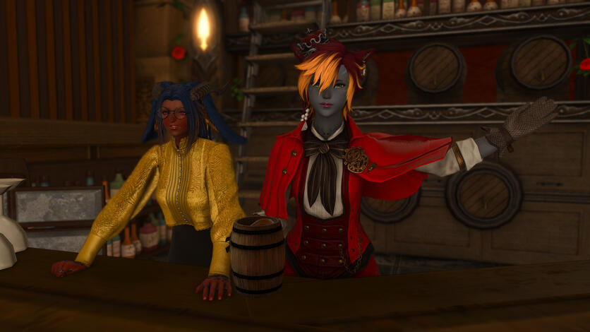 After social isolation this witty hothead has made her return to society. While she mainly remains in the shadows of the Black Shroud, special occasions just like the Black Clover lure her into the crowd and busy streets. Here it is she can truly display her skills as a barmaid, priding herself with all her ingredients being self-grown and gathered. Add a little bit of natural charm & clumsiness to the mix and she is certain to brighten up your mood or drop your drink. Being announced Gorbeljin's successor, she will do her all to please new and old customers, preserving what the Black Clover is to all of us.